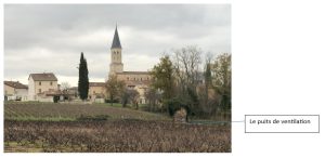 En sortant du musée du compagnonnage, une construction ressemblant à un puits est visible au bout de la vigne face au musée : Marcel Pariaud nous indique qu’il s’agit bien d’un puits (point d’eau !) mais de ventilation… pour les mines de manganèse situées dans les terres de Romanèche.