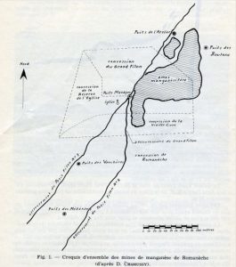 D’abord exploité par des habitants de Romanèche-Thorins de façon individuelle, le gisement de manganèse fait ensuite l’objet d’une exploitation régulée. Des concessions sont créées, la première par ordonnance royale en 1823.