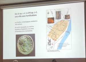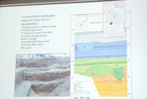 Le diagnostic avait eu lieu en 2016 pour la création d’un parking souterrain, soit 4 m de profondeur. Ces fouilles ont permis de révéler plusieurs niveaux du XVIIIe siècle à l’antiquité, dont des remparts du 4/5e siècles sur 7 ha.