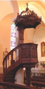 Dans le milieu il y avait un beau lustre et un autre plus ancien et plus petit, ils n’ont pas été remis lors de la rénovation de l’église.