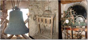 Il existe une deuxième cloche plus petite qui porte l’inscription en latin : « Tubilationis ». À l’étage, dessous les cloches on trouve un clavier qui permet de sonner en carillon sur les deux cloches.