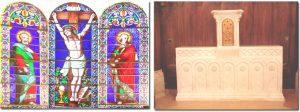 Près de la table de communion: « Claudine Dury, épouse Joseph Étienne Dury ».